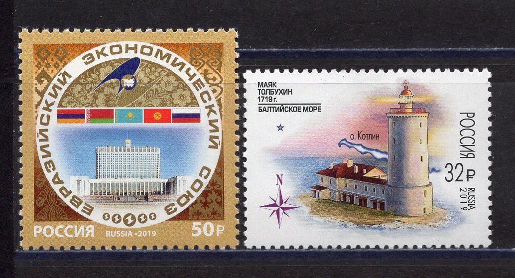 Почтовые марки. Россия. 2019г. Экономический союз. Маяки. №2525-2526.