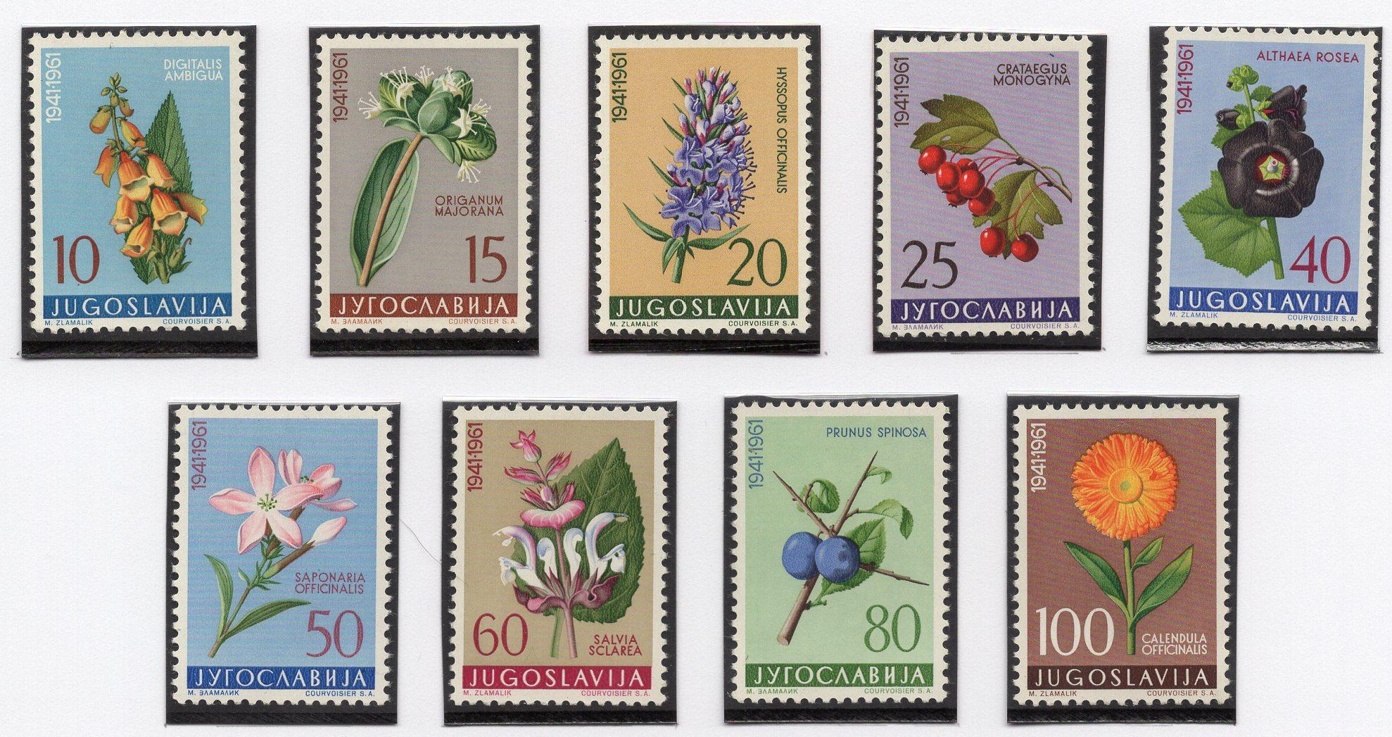Почтовые марки. Югославия, 1961 г. №943-951. (Mi 14.0 e) Флора: цветы.