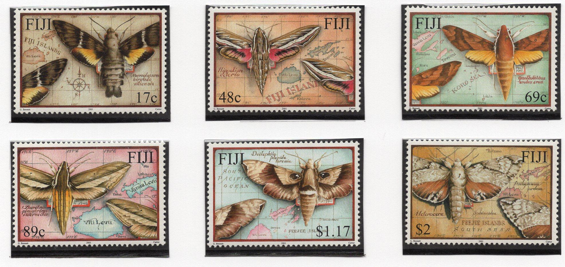 Почтовые марки. Фиджи, 2001 г. №958-963. Мотыльки.
