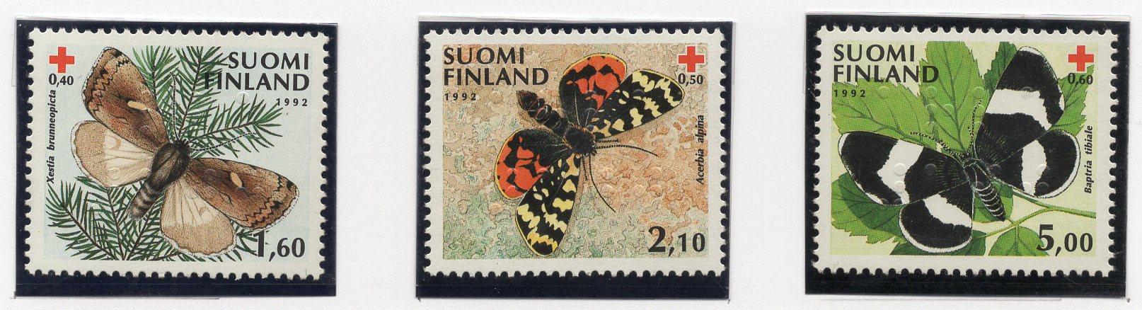 Почтовые марки. Финляндия, 1992 г. №1169-1171. Фауна: бабочки. (Надписи на шрифте Брайля)