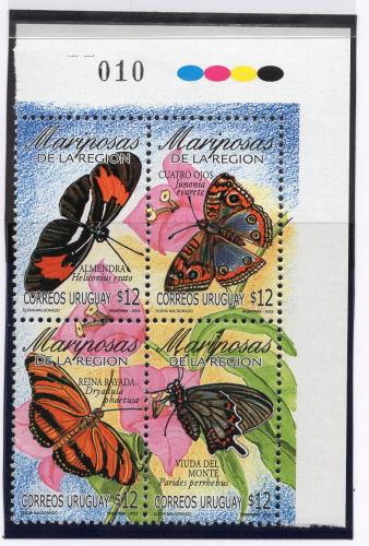Почтовые марки. Уругвай, 2003 г. №2720-2723. Фауна: бабочки.