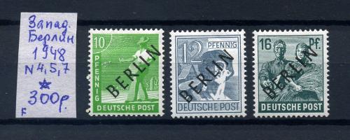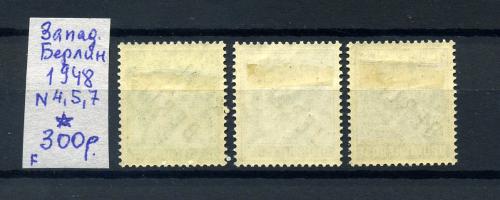 Почтовые марки. Зап. Берлин 1948 г. № 4,5,7.