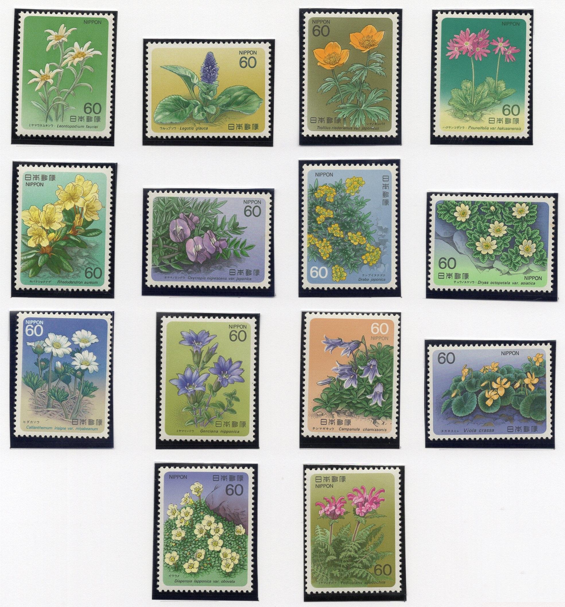 Почтовые марки. Япония, 1984-1986 гг. №1596-97, 1599-1600, 1917-1918, 1623-1624, 1649-1650, 1660-1661, 1673-1674. (Mi 14.0 e) Флора: цветы.