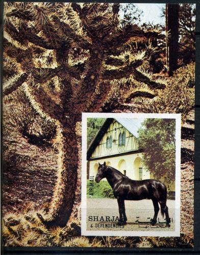 Почтовые марки. Шарджа. 1972г. Лошади. Блок №116.
