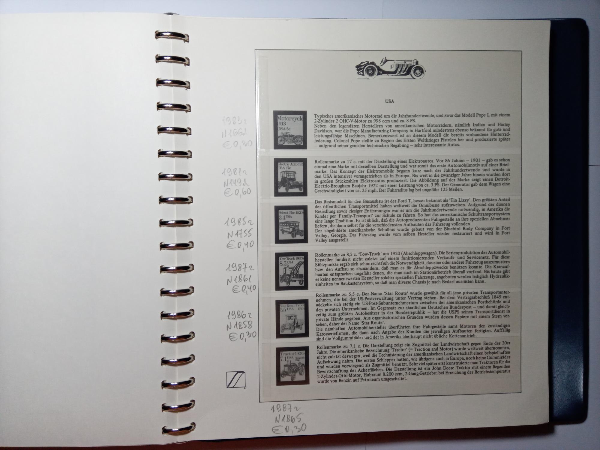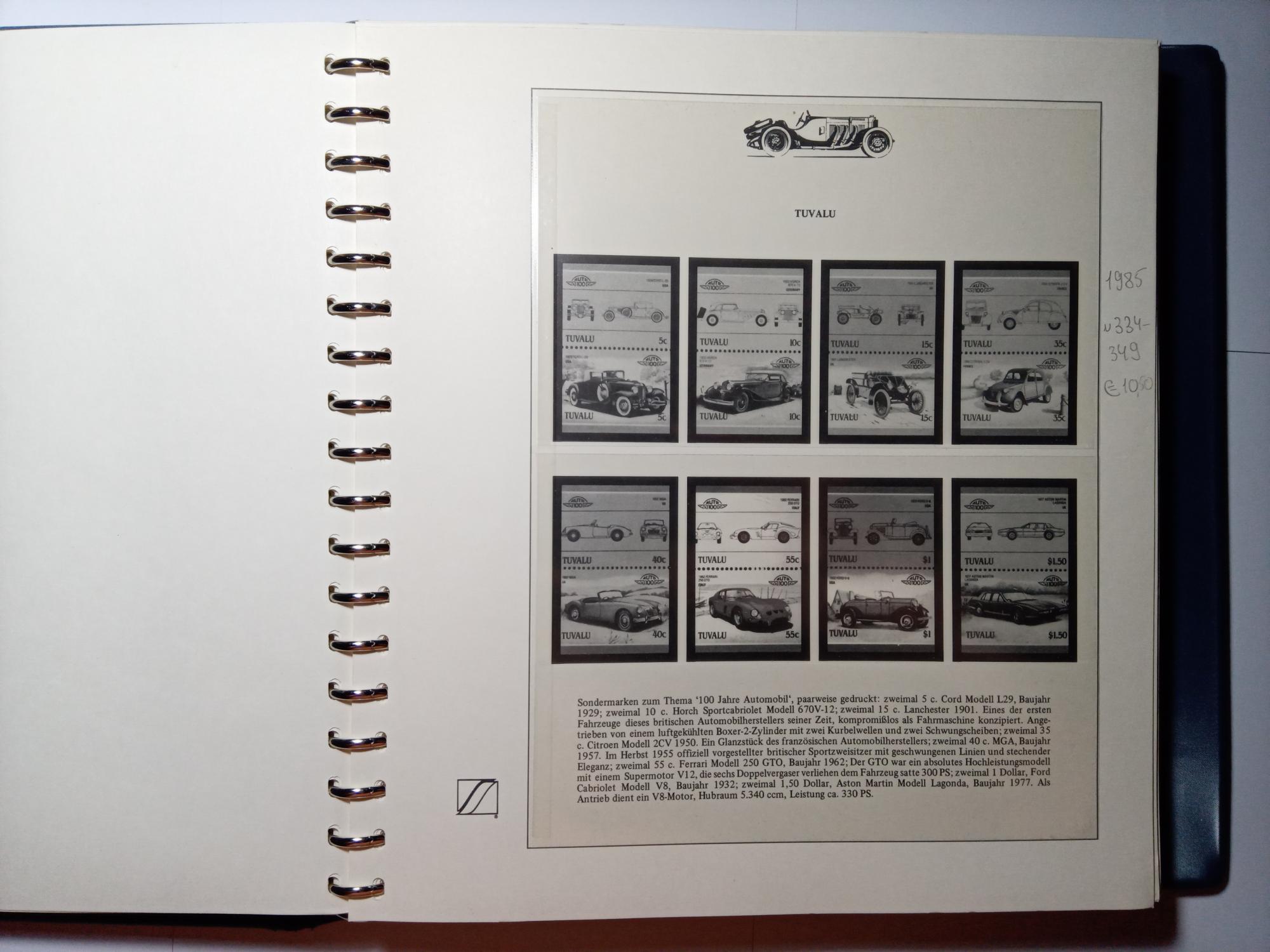 Иллюстрированный альбом для марок. Про-во Германия. LINDNER. 100 лет автомобилю.. 72 листа. 290мм х 310мм. Б/У.(Сост. - хорошее, есть надписи на листах карандашом)