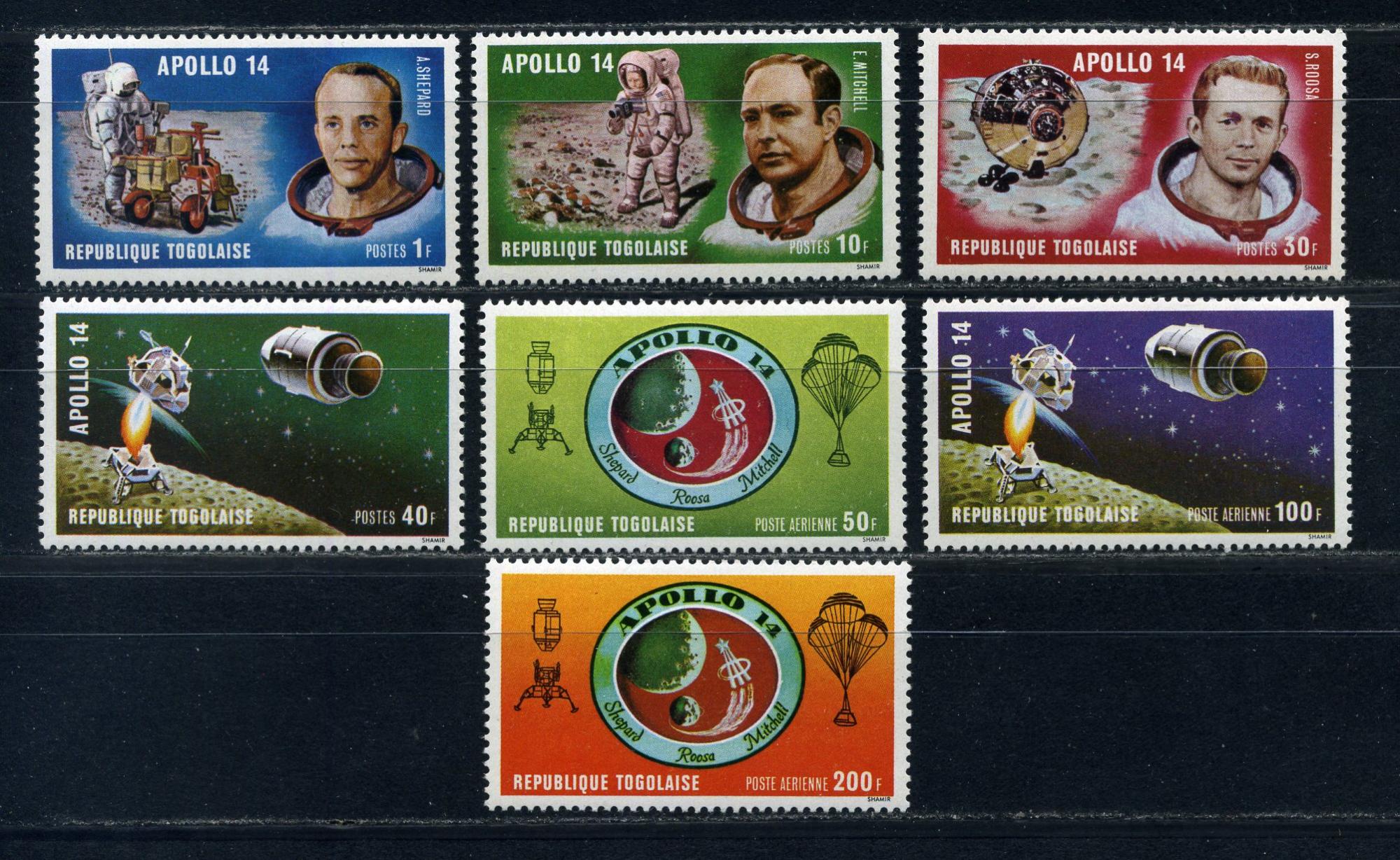 Почтовые марки. Того. 1971г. Космос. Аполло-14. №849-855.