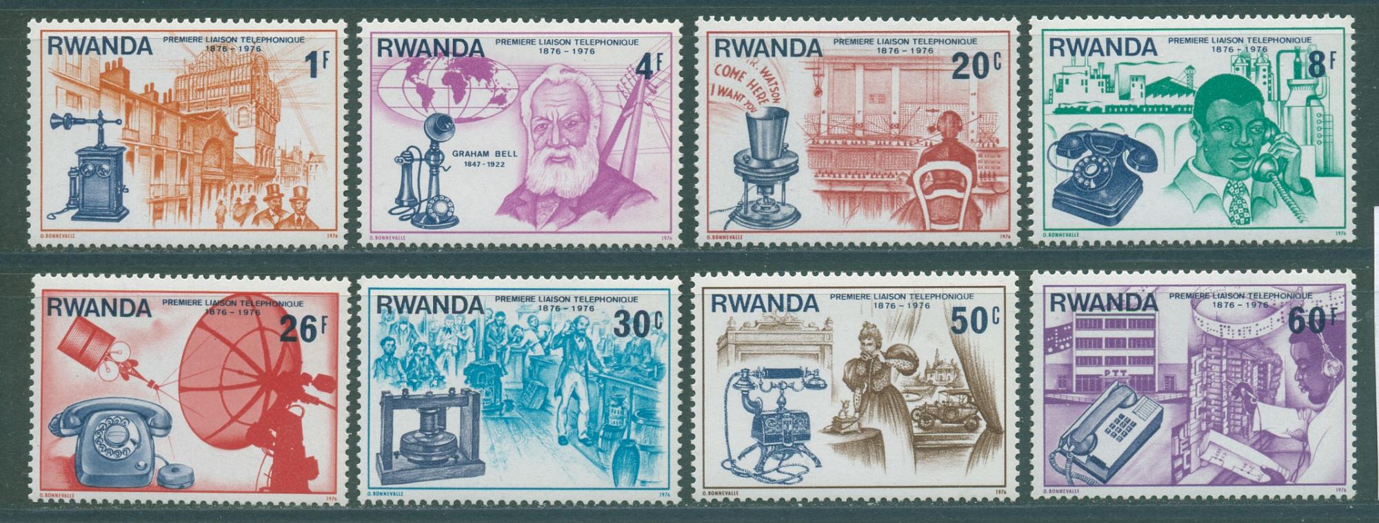 Почтовые марки Руанда 1976 г Столетие телефона № 807-814