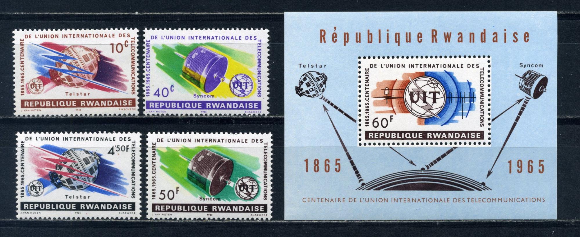 Почтовые марки. Руанда. 1965г. ITU. Космос. №114-117. Блок №4.