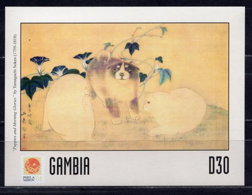 Почтовые марки. Гамбия, 2001 г. Бл. 544. Живопись. Собаки.