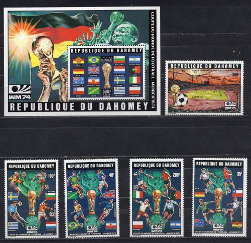Почтовые марки. Дагомея, 1974 г. Футбол. MiNr. 566 - 570. Бл. 23 Комплект! . (Mi 15.0 e)