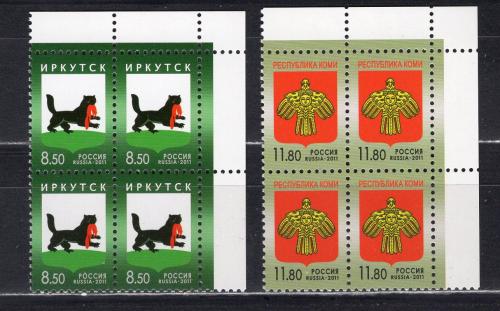 Почтовые марки. Россия. 2011г. Гербы. Иркутск. Коми. №1486-1487. КБ.
