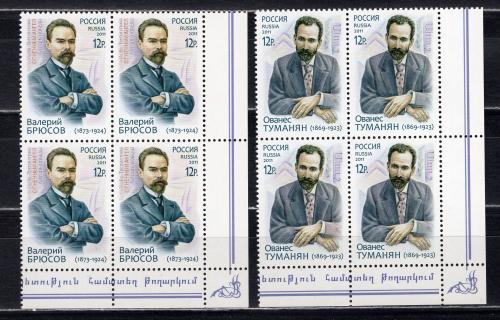 Почтовые марки. Россия. 2011г. Писатели. Совместный выпуск. №1490-1491. КБ.