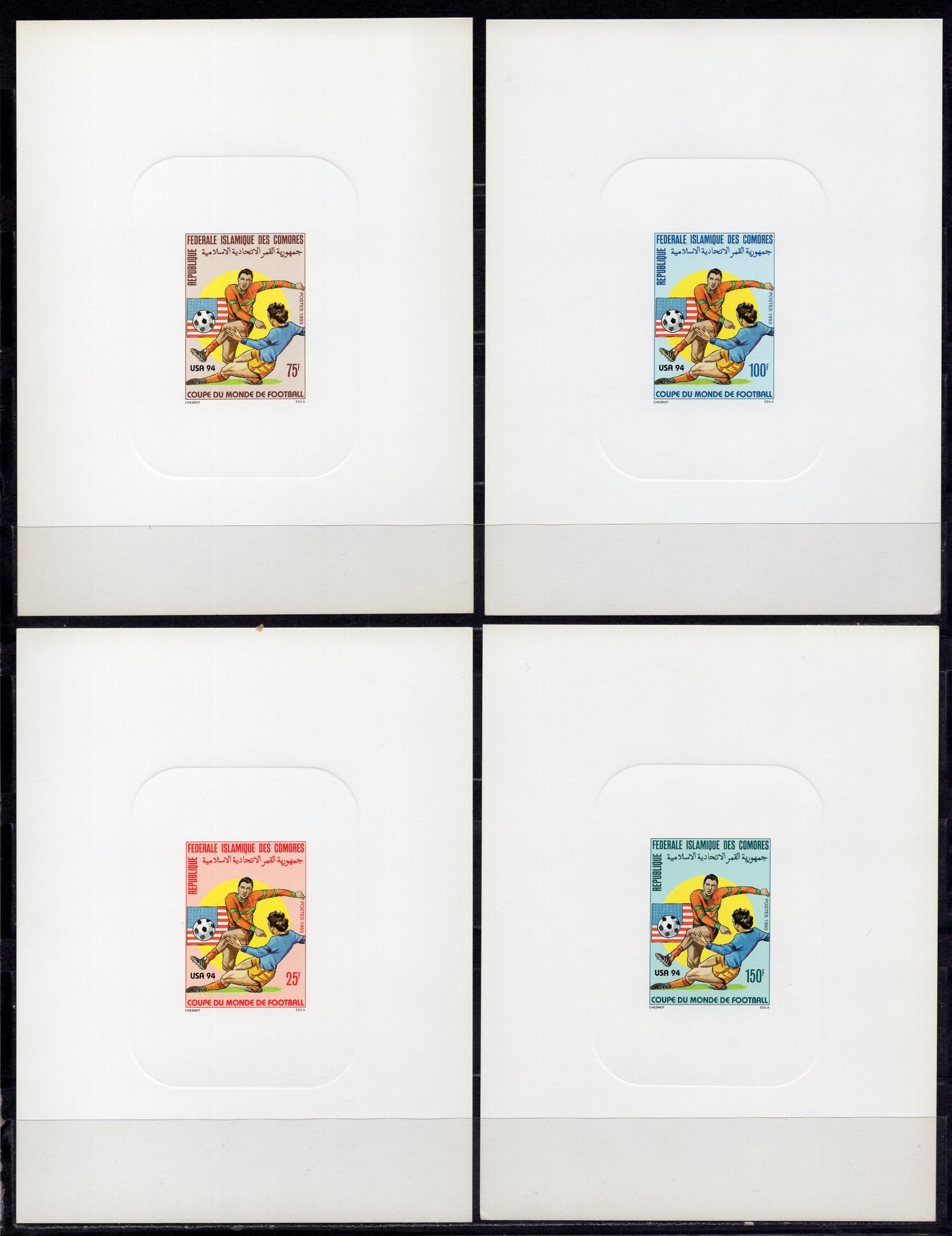 Почтовые марки. Коморские о-ва, 1993 г. №1009-1012. Люкс-блоки. Футбол. Безз.