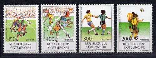 Почтовые марки. Кот-д’Ивуар, 1993 г. №1101-1104. Футбол. (См. сост. левой марки).