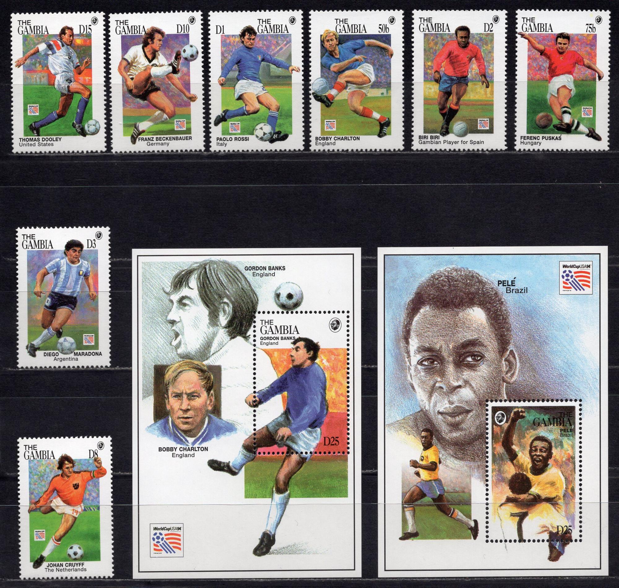 Почтовые марки. Гамбия, 1994 г. №1954-1961. Бл. 237, 238. Футбол. (Mi 42.0 e)