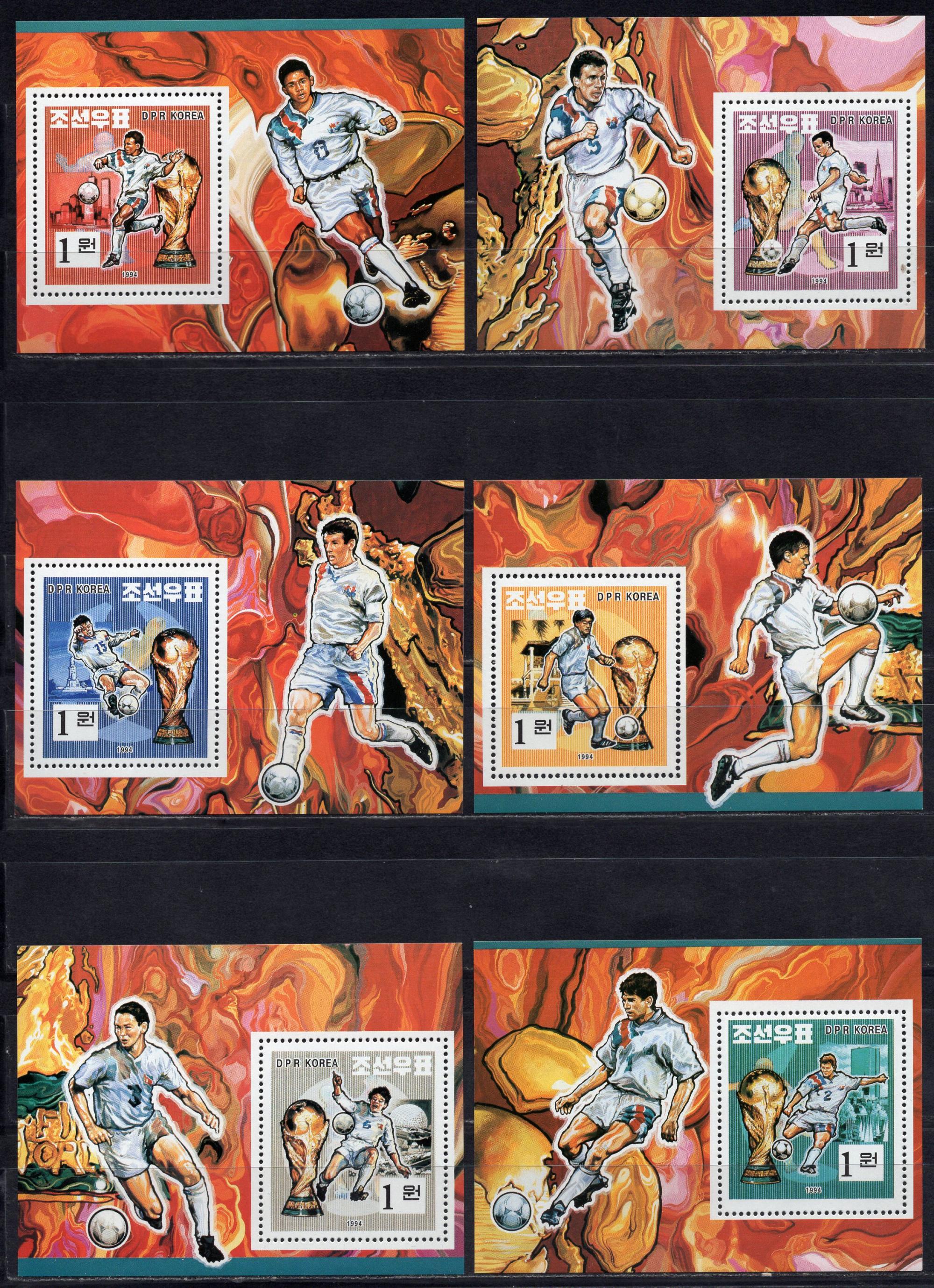 Почтовые марки. КНДР, 1994 г. №3648-3653. Люкс-блоки. №312-317. Футбол. (Mi 18.0 e)
