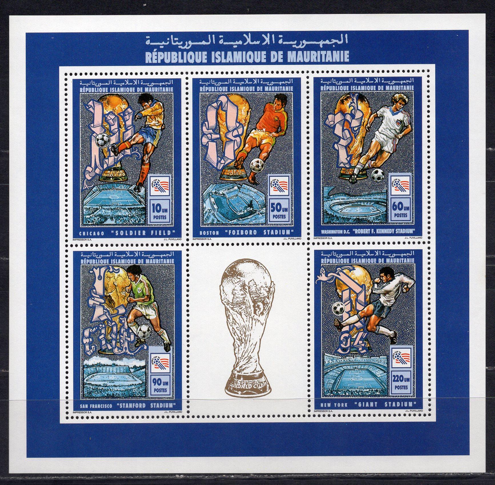 Почтовые марки. Мавритания, 1994 г. №1018-1022. (МЛ). Футбол. (Mi 18.0 e)