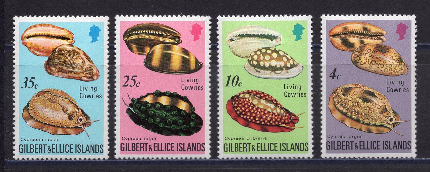 Почтовые марки. Острова Гилберта и Эллис. 1975г. Ракушки. Морская Фауна. №236-239.