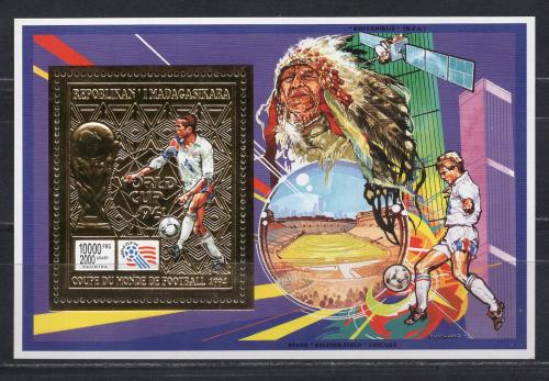 Почтовые марки. Мадагаскар, 1994 г. Бл.258А (с №1684). Фольга. Золото. Футбол. (Mi 12.0 e)