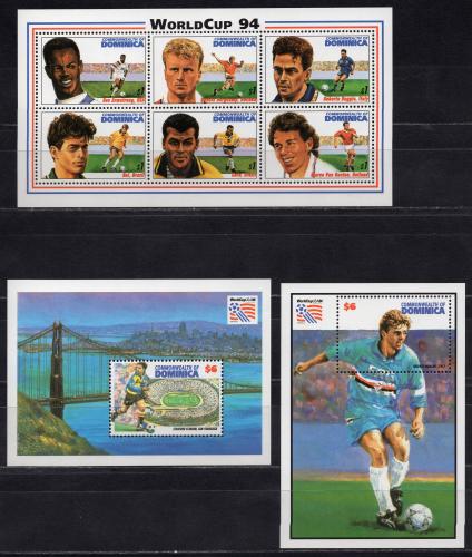 Почтовые марки. О. Доминика, 1994 г. Футбол. №1858-1863. Бл. 268, 267. (Mi 17.0 e)
