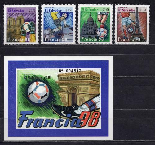 Почтовые марки. Сальвадор, 1998 г. №2086-2089. Бл.20. Футбол.