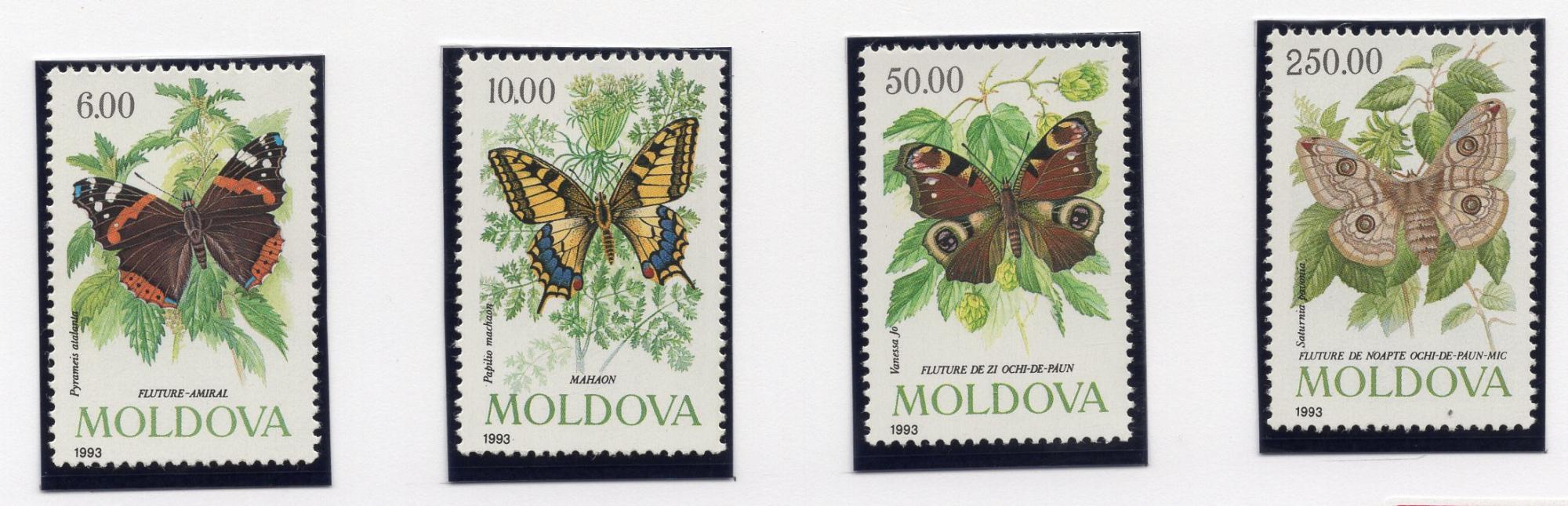 Почтовые марки. Молдавия, 1993 г. №77-80. Бабочки.