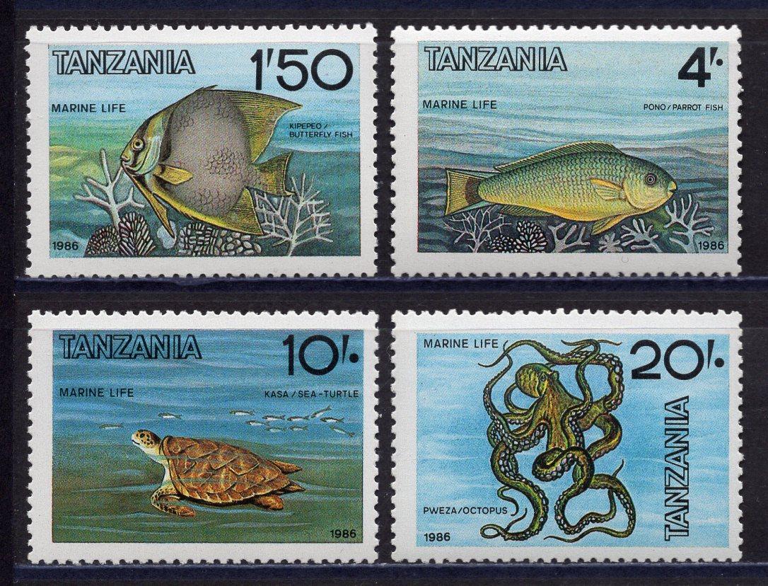 Почтовые марки. Танзания. 1986г. Морская Фауна. №337-340.