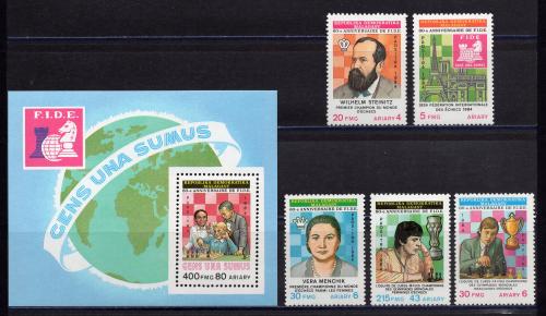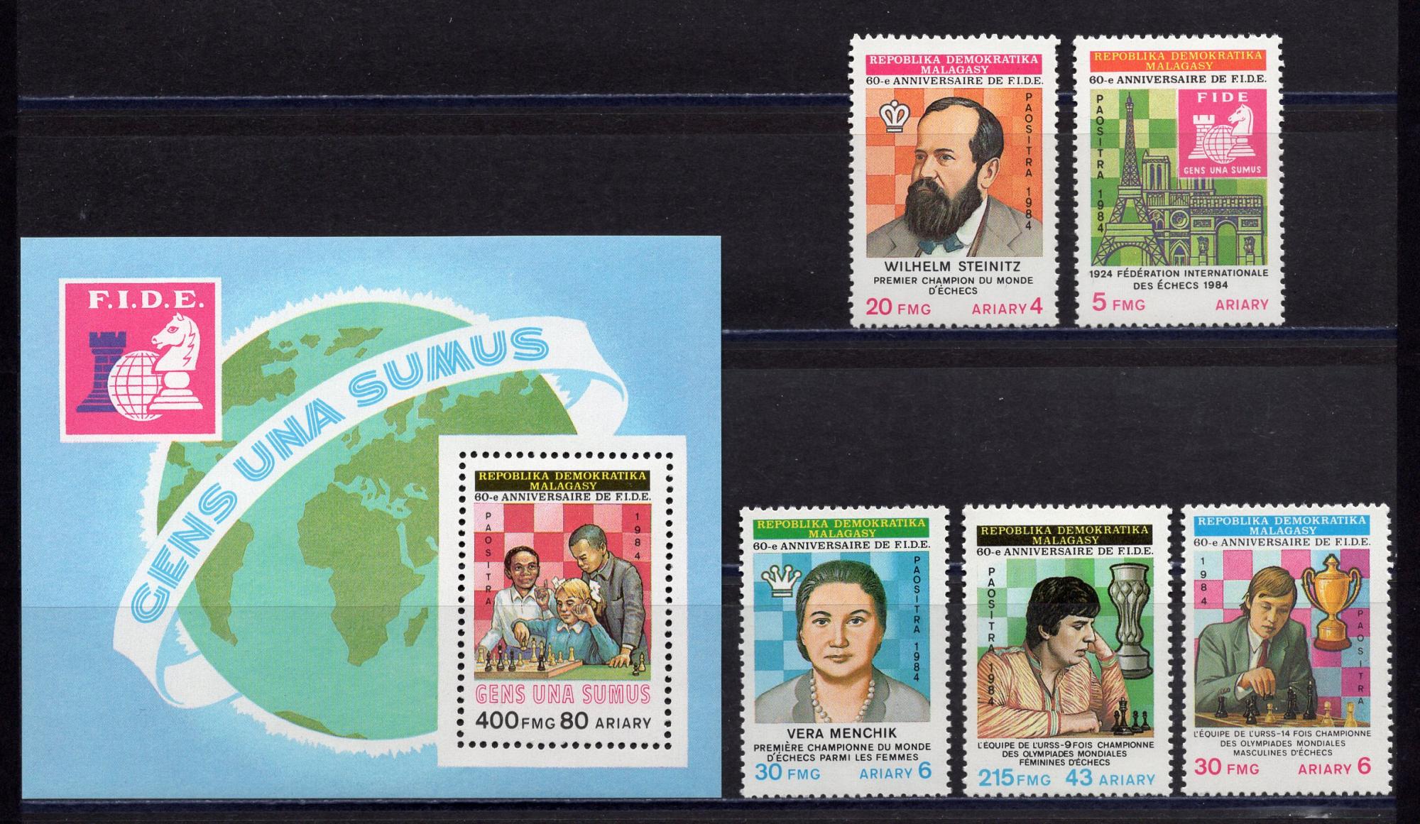Почтовые марки. Мадагаскар. 1984г. Шахматы. №951-955. Блок №26.