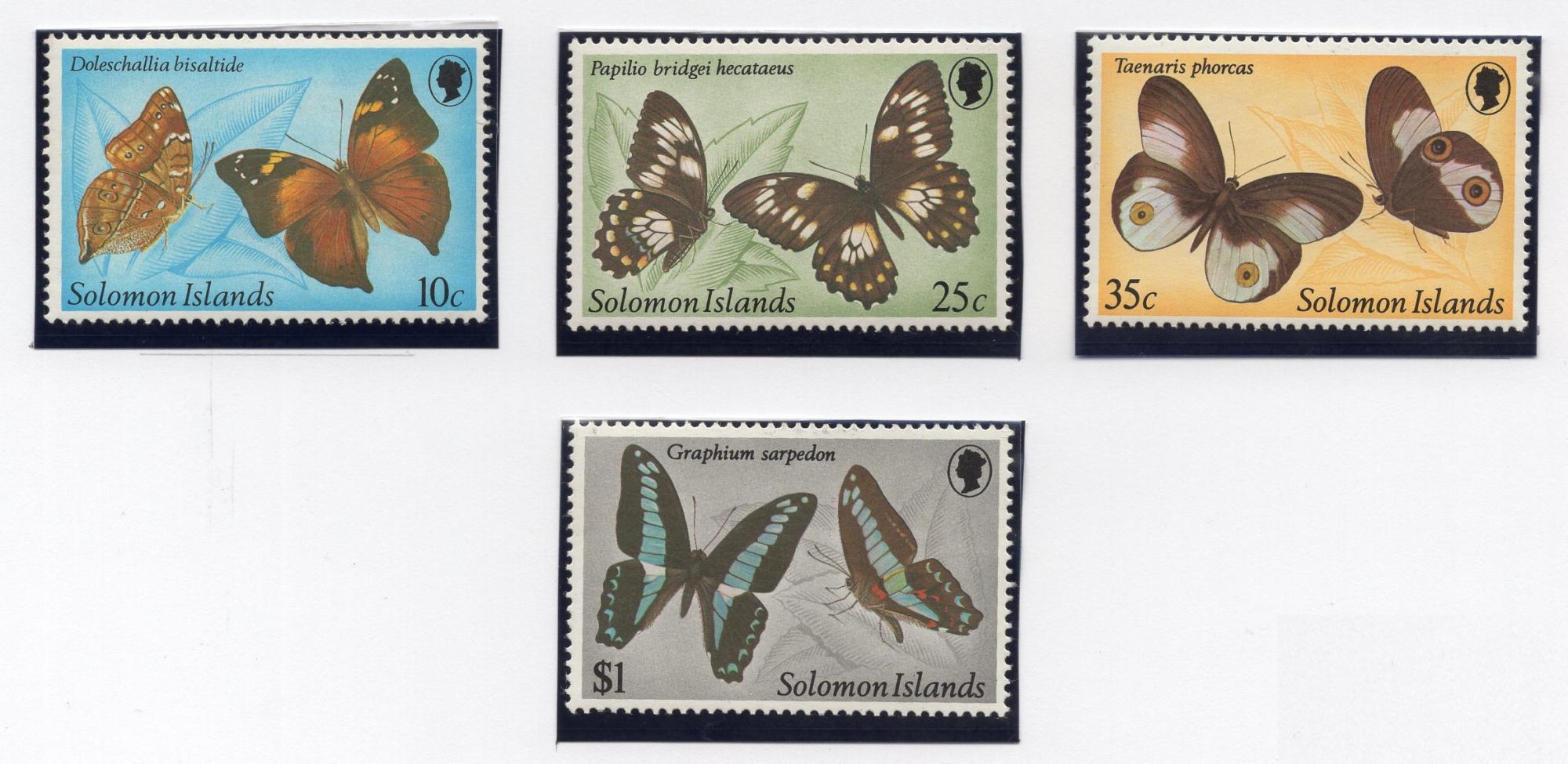 Почтовые марки. Соломоновы о-ва, 1982 г. №455-458. Бабочки.