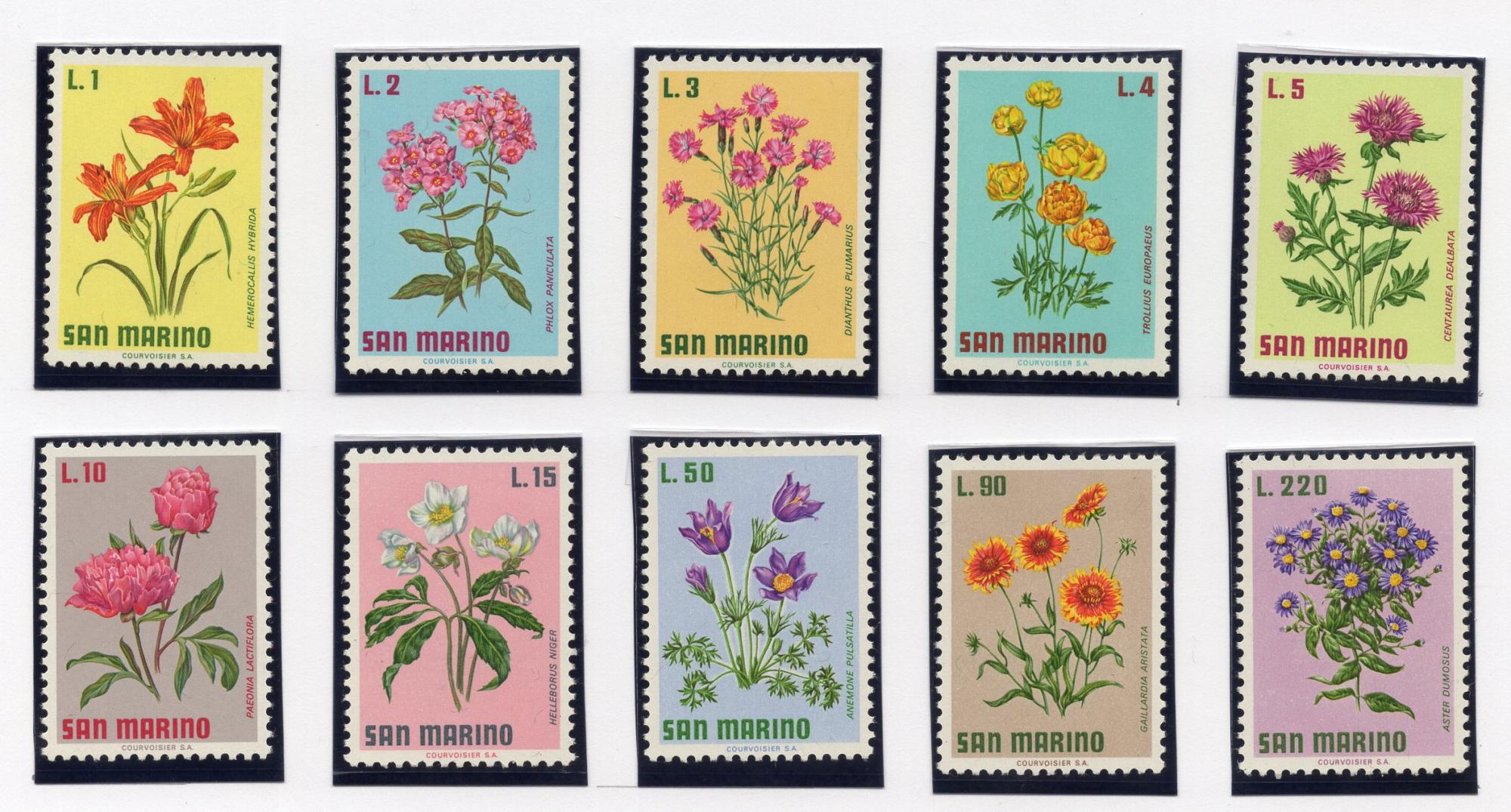 Почтовые марки. Сан-Марино, 1971 г. №984-993. Цветы.
