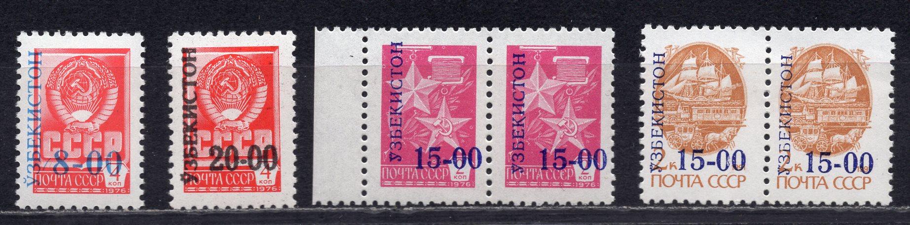 Почтовые марки. Узбекистан, 1993 г. №15-18. Провизории. Надпечатки на марках СССР.
