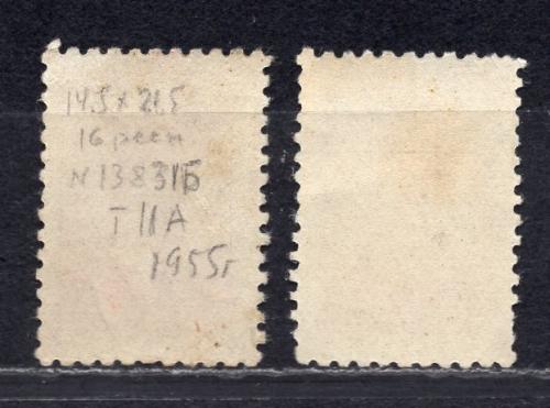Почтовые марки. СССР, 1955, 1957 г. №1383В, 1383 1Б; Т 2А. (14,5*21,5). Стандарт. Герб.