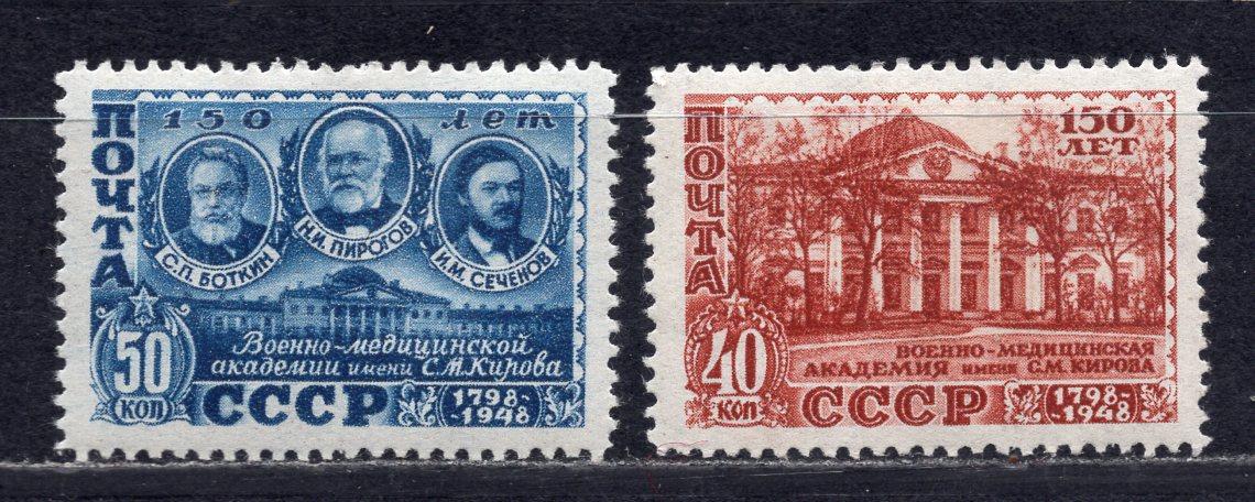 Почтовые марки. СССР, 1949 г. №1376, 1377. Военная академия им. Кирова. (Кат: 200, 300 руб.)
