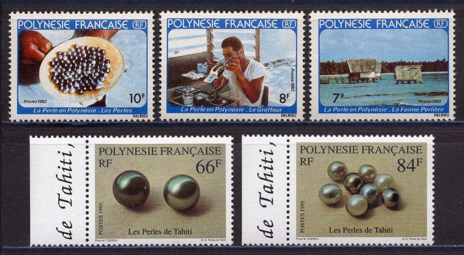 Почтовые марки. Фр. Полинезия. 1982г, 1995г. Жемчуг. №347-349. №684-685.