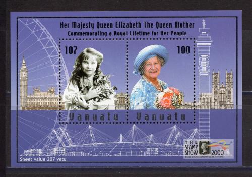 Почтовые марки. Вануату. 2000г. Выставка марок 2000. Лондон. 100-летие Королевы-матери. Блок №38 (№1110-1111).