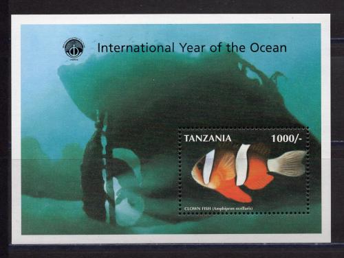 Почтовые марки. Танзания. 1998г. Рыбы. Блок №987 (№2876).