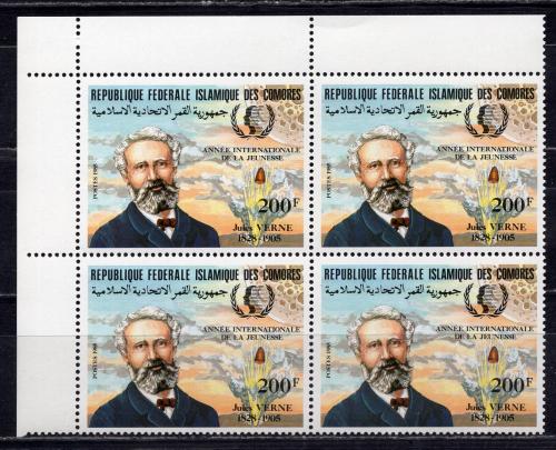 Почтовые марки. Коморские острова 1985г. Жюль Верн. №738. КБ (Mi: 9.00 Евро) (См. сост)