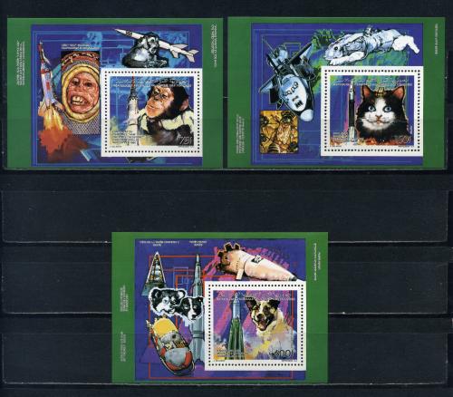 Почтовые марки. Коморы. 1992г. Животные в Космосе. Блоки №366.368.371.