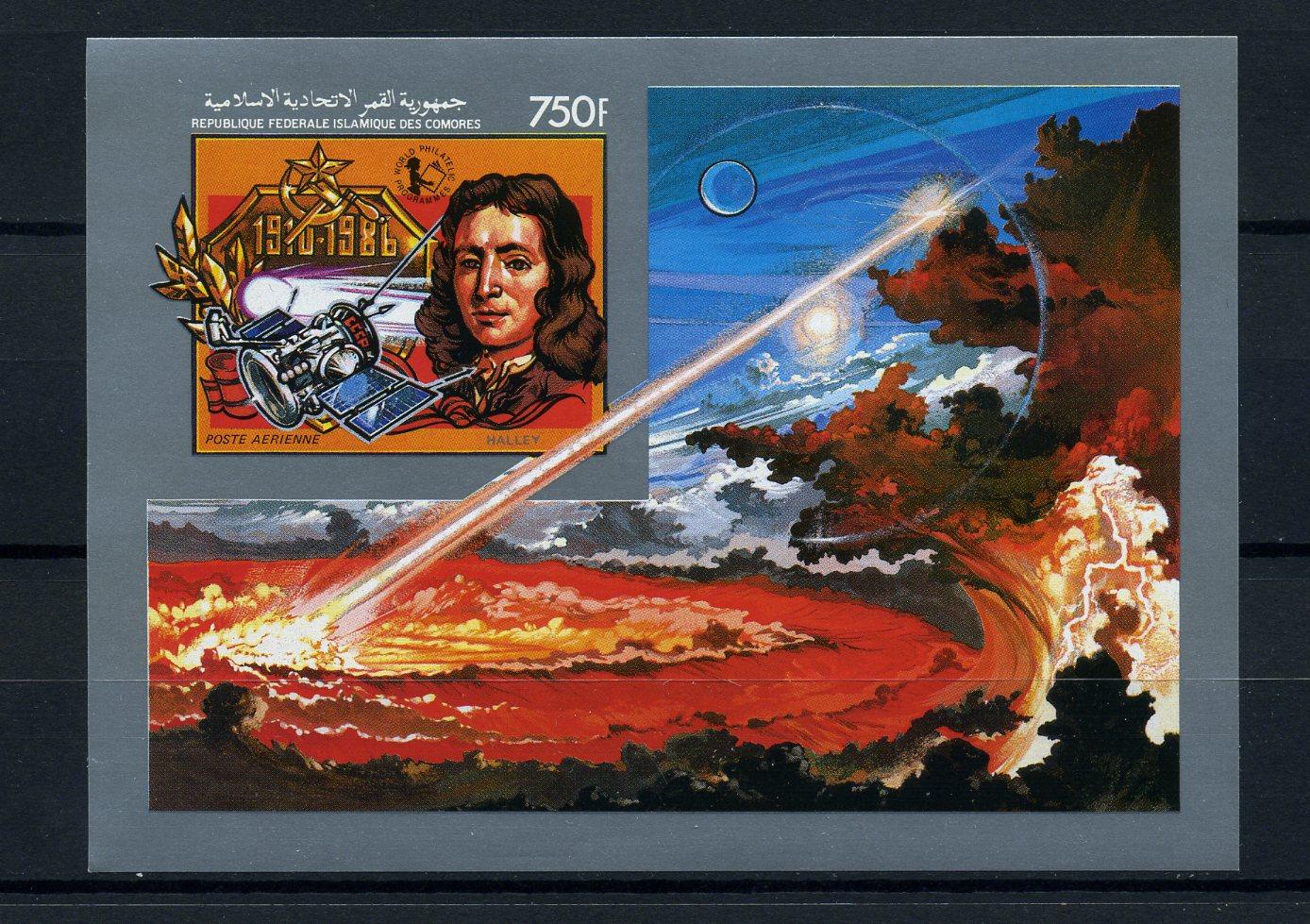 Почтовые марки. Коморы. 1988г. Космос. Комета Галлея. Беззуб. Блок №2628в. (Mi: 30.00 Евро)