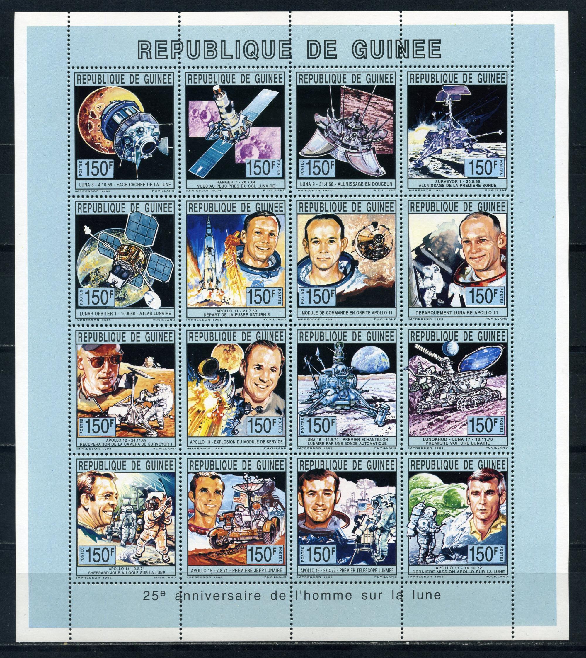 Почтовые марки. Гвинея. 1993г. Космос. 25-летие человека на Луне. МЛ. №1442-1457 (Michel: 25.00 Евро).