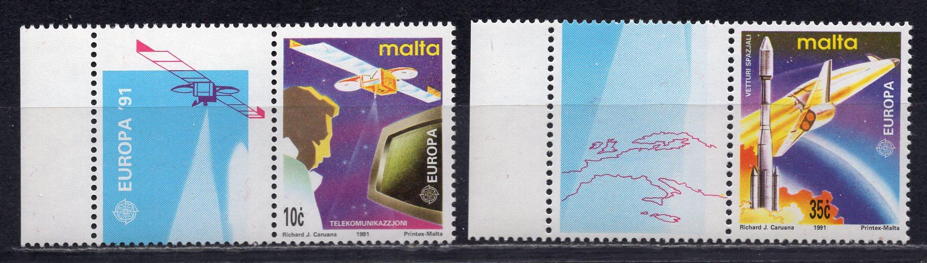 Почтовые марки. Мальта. 1991г. Европа. Космос. №854-855. (+ купоны)