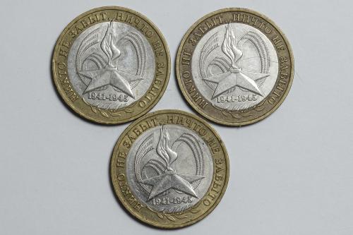 Монеты России. 10 рублей 2005 г 60 лет победы. 3 шт.