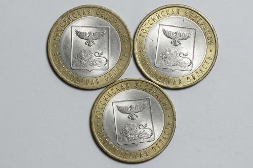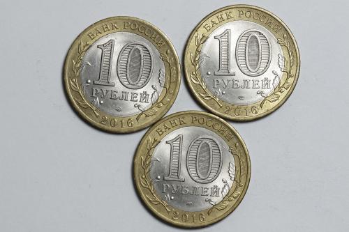 Монеты России. 10 рублей 2016 г. Белгородская область. 3 шт.