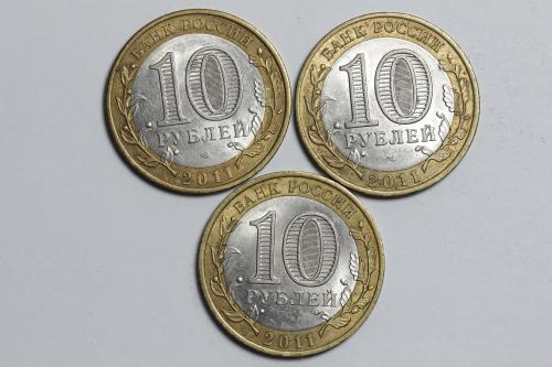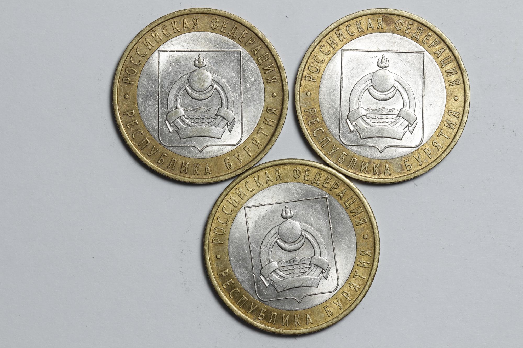 Монеты России. 10 рублей 2011 г. Республика Бурятия. 3 шт.