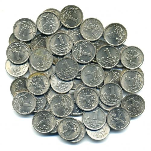 Монеты России. 1 копейка 1997-2009 г. 50 шт.