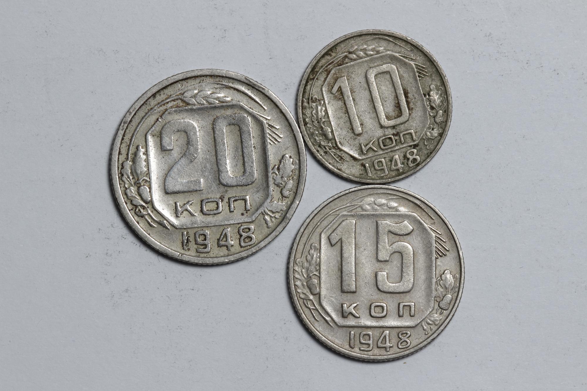 Монеты СССР. 10,15,20 копеек 1948 г. 3 шт.