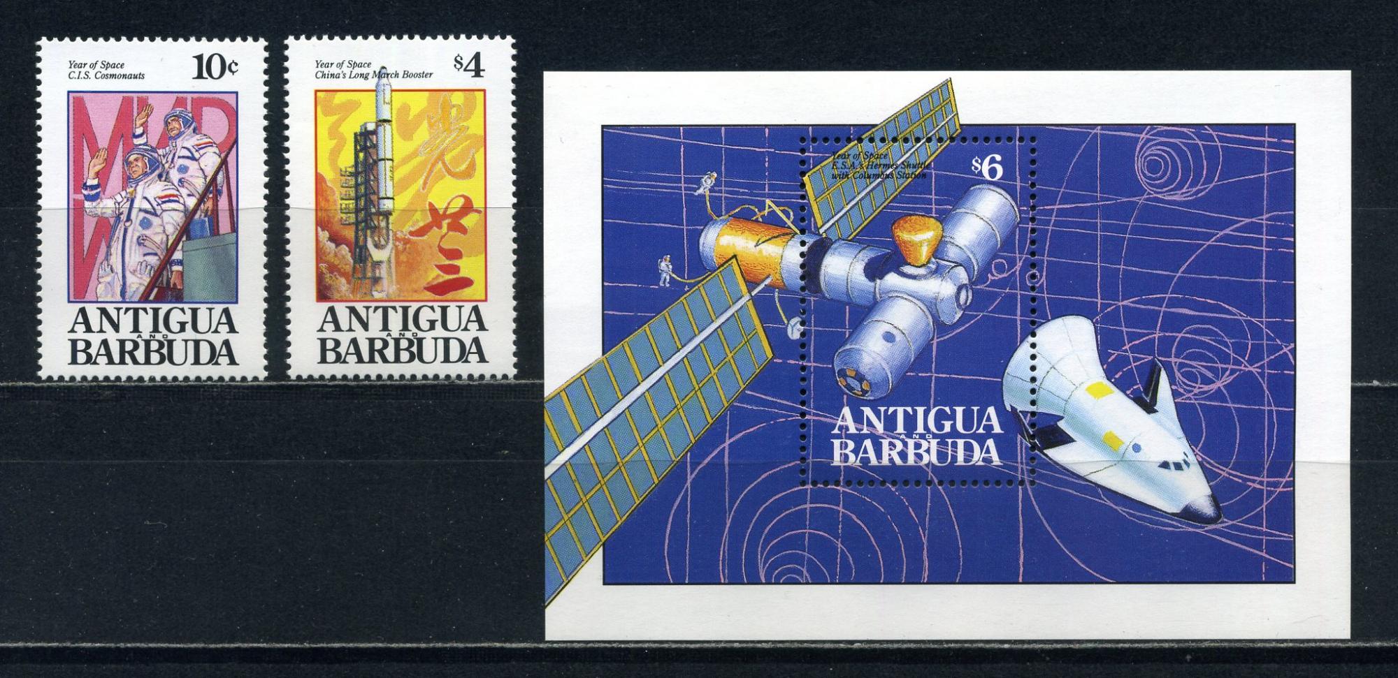 Почтовые марки. Антигуа и Барбуда. 1992г. Год Космоса. №1697-1698. Блок №245.