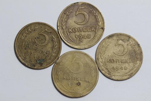 Монеты СССР. 5 копеек 1930-1956 г. 4 шт.