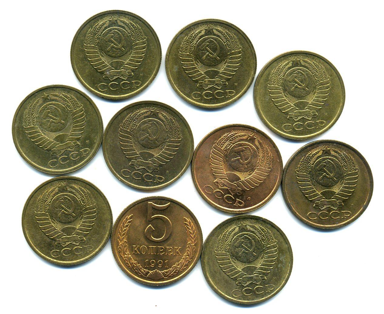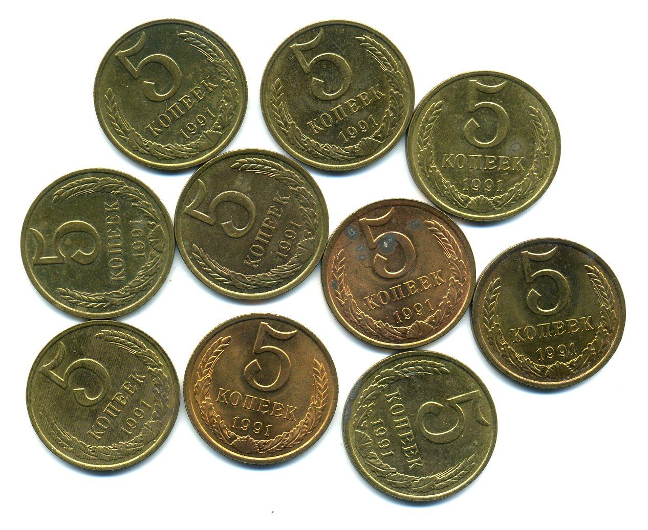 Монеты СССР. 5 копеек 1991 Л. 10 шт.