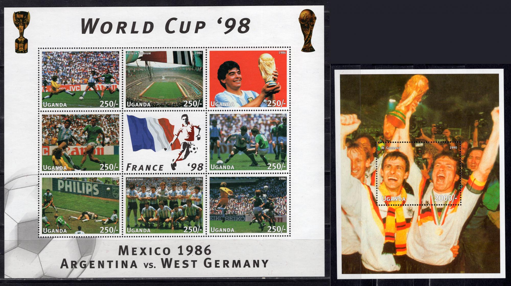 Почтовые марки. Уганда, 1997 г. №1932-1939 (МЛ), Бл. 284. Футбол.